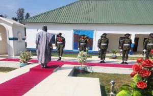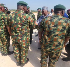 He was received on arrival by the General Officer Commanding (GOC) 82 Division of the Nigerian Army/Commander JTF SE of operation Udoka, Major-General H.T Dada and other  senior military officers.